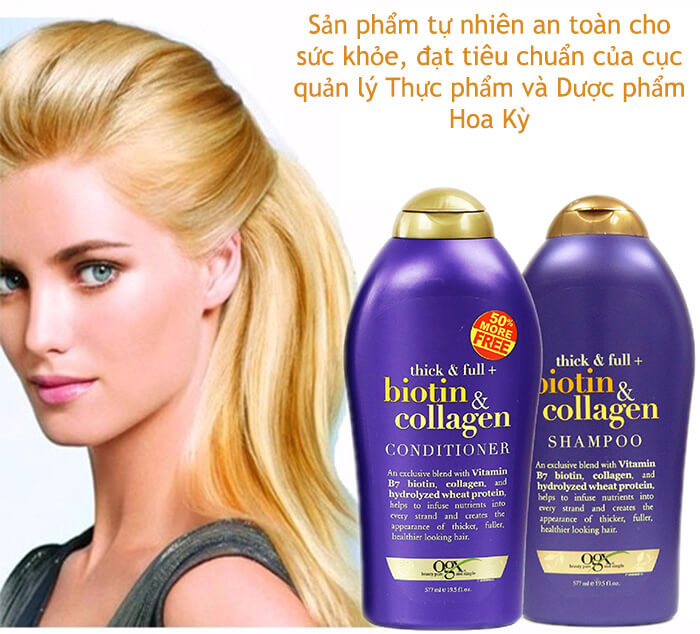 | Tên sản phẩm | Bộ dầu gội xả kích thích mọc tóc OGX Biotin & Collagen Thick & Full của Mỹ 577ml |