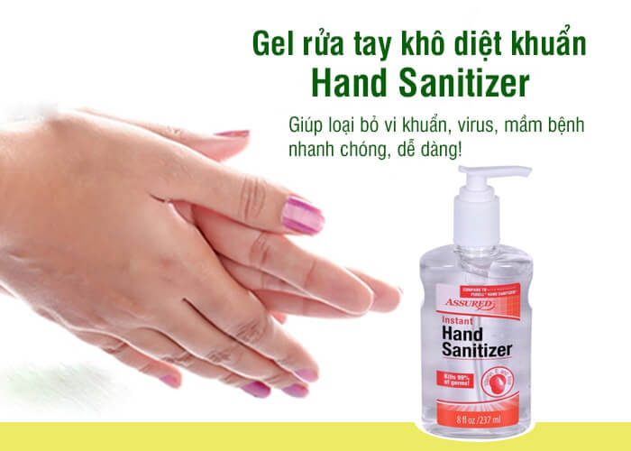 - Gel rửa tay khô sát khuẩn Hand Sanitizer diệt khuẩn 99% và giữ ẩm mềm mại cho da tay bằng vitamin E và lô hội.