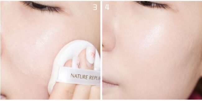 Bước 4: Dùng bông mút đã thấm kem nhẹ nhàng tán đều khắp mặt.