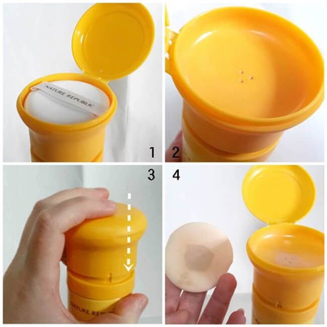 Khác với các loại kem chống nắng thông thường, Ice Sun Nature Republic được đánh giá cao nhờ thiết kế kèm bông mút giúp bạn dễ dàng dặm kem chống nắng lên da. Khi dùng bạn đặt miếng bông mút lên miệng chai, nhấn nhẹ để kem xịt vào miếng bông, sau đó dặm đều lên da như khi dùng cushion chứ không xịt trực tiếp sản phẩm lên da. Ngoài ra, phần giao giữa nắp và thân có chữ ON-OFF. Bạn chỉ cần xoay phần nắp về phía ON hoặc OFF khi cần đóng mở, nhờ đó giúp kem không bị tràn ra ngoài.