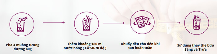 ♦ Một liệu trình gồm 2 hộp 500g, dùng được 24 bữa, tương đương 12 ngày, mỗi ngày 2 lần Sáng và trưa. Liệu trình 1 giảm khoảng 2,5-4 kg, liệu trình 2 giảm nhiều hơn liệu trình 1 do cơ thể đã quen hơn với chế độ ăn. Ngưng uống, thường thì sẽ tiếp tục giảm kg trong 2 tháng.