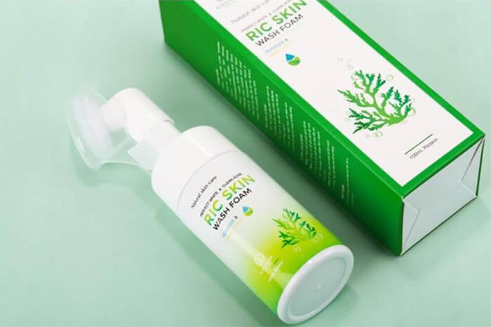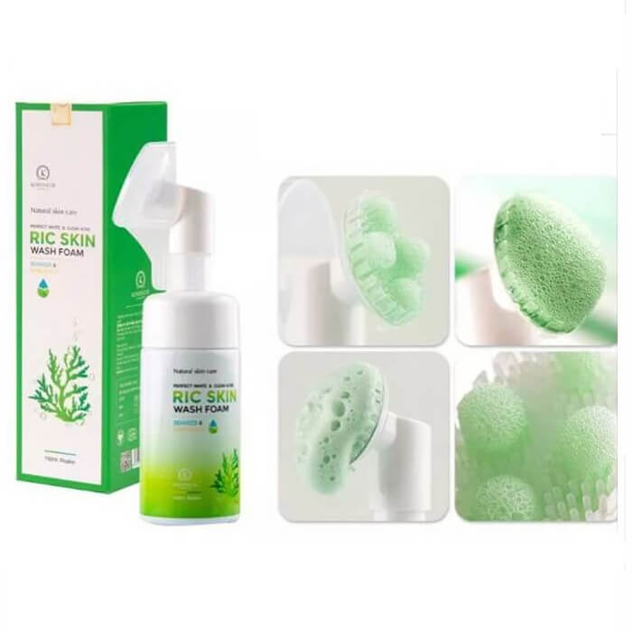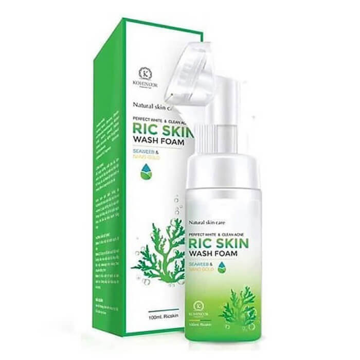 - Sữa rửa mặt Ric Skin Ric Skin Foam được chiết xuất từ các thành phần chính gồm tảo biển, Nano vàng, chiết xuất dâu tằm, dầu hạt nho.
