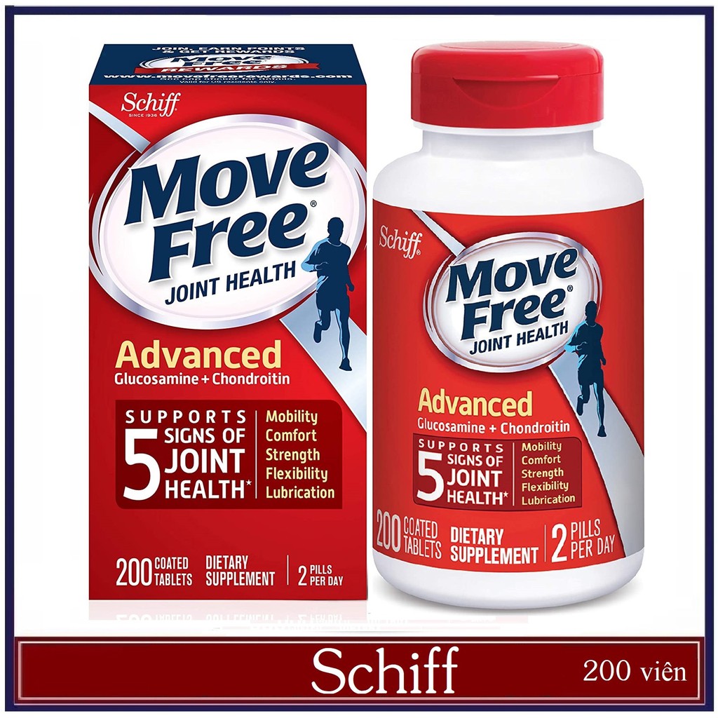 Sản phẩm có tên đầy đủ là Schiff Move Free Joint Health Advanced Glucosamine + Chondroitin 200 viên Mỹ là một trong những sản phẩm giúp bổ xương khớp bán chạy nhất trên thị trường Mỹ cũng như các nước trên thế giới hiện nay.